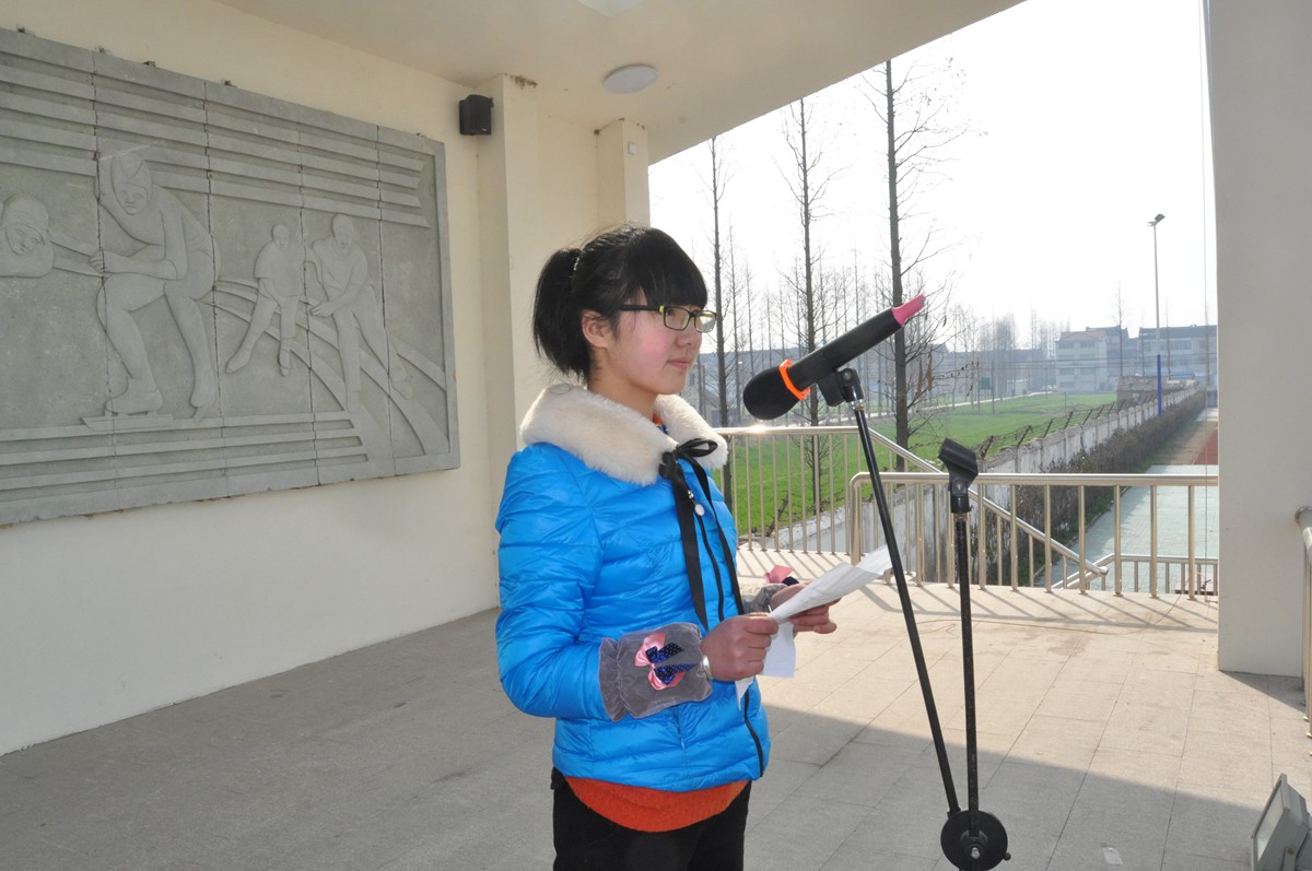 今天的升旗仪式由 高一(14) 班主持,我是主持人_ 周韵秋 _。(停顿一会)