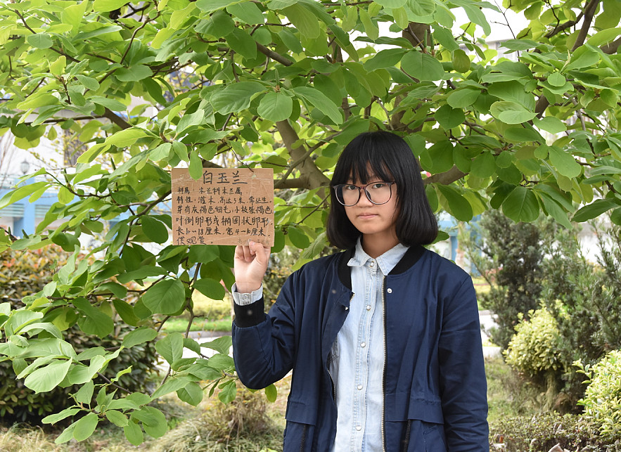 但这个活动并没有想象中的那么简单。大家首先要对校园里植物的学名、科名及特征进行调查;然后要对调查信息进行统计、核实、整理;最后再制作标牌,给植物挂上标有“名称、习性、特点”等信息的名片。在大家的努力下,近20种植物有了属于自己的“身份证”。