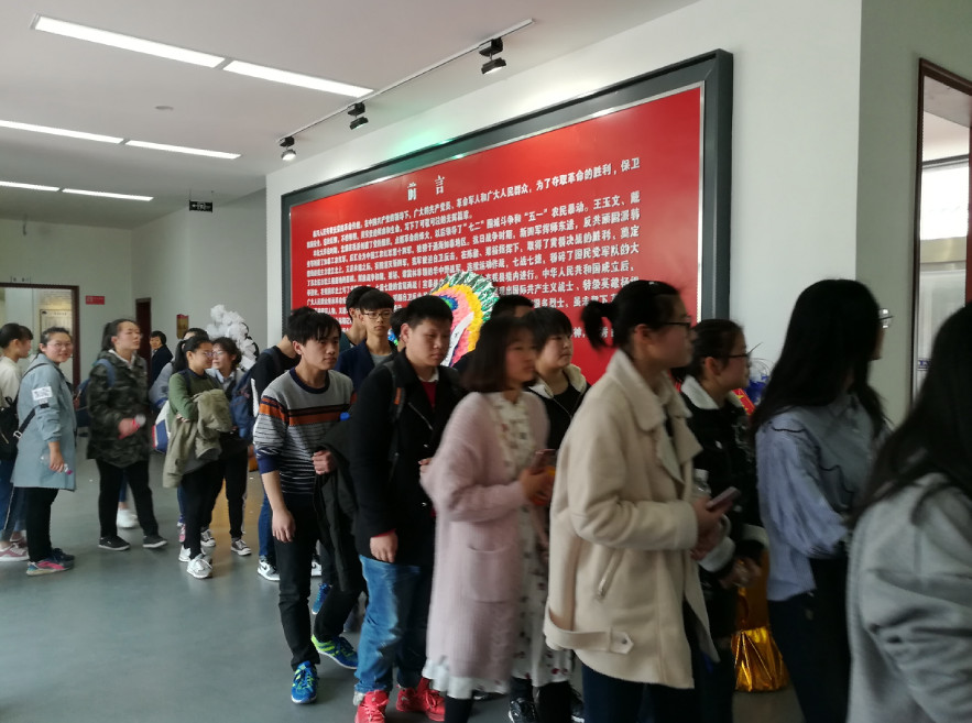 上午八点,高一高二全体学生穿戴整齐,排着整齐的队伍从学校出发,怀着对烈士无限崇敬的心情分别来到泰兴市杨根思烈士陵园,和泰兴烈士堂、泰兴三馆。