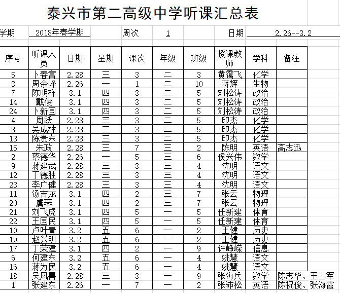 推门听课安排2018春