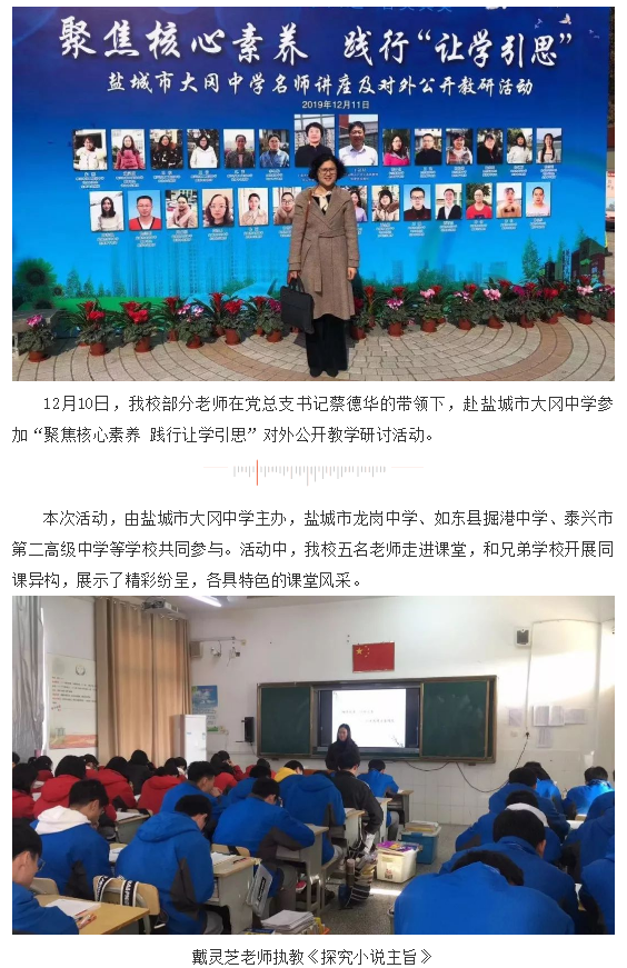 我校老师应邀参加盐城大冈中学“同课异构”校际教研活动