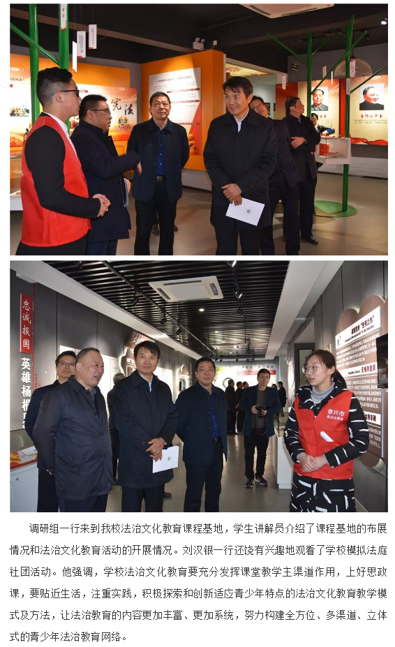 司法部普法与依法治理局副局长刘汉银一行莅临我校调研指导法治教育工作
