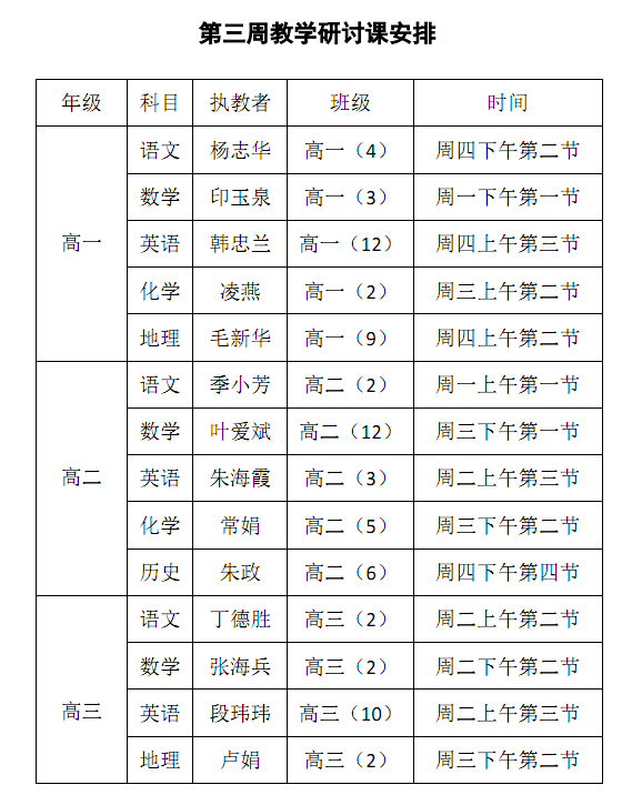 2019年秋第三周教学研讨课安排表