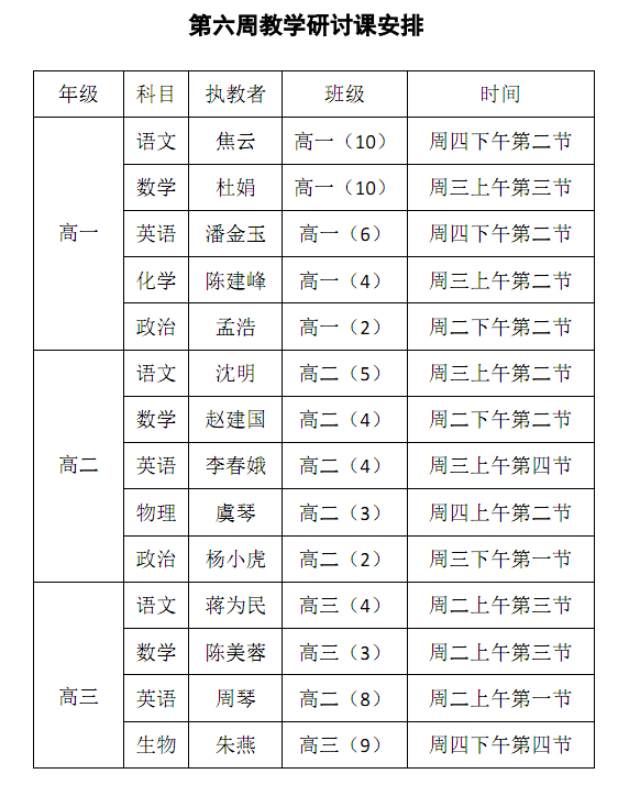 2019年秋第六周教学研讨课安排表