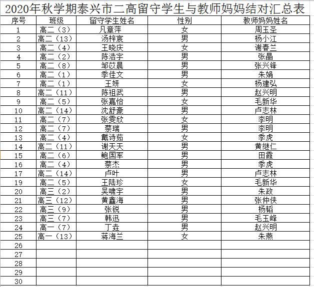 2020年秋学期教师妈妈结对帮扶表