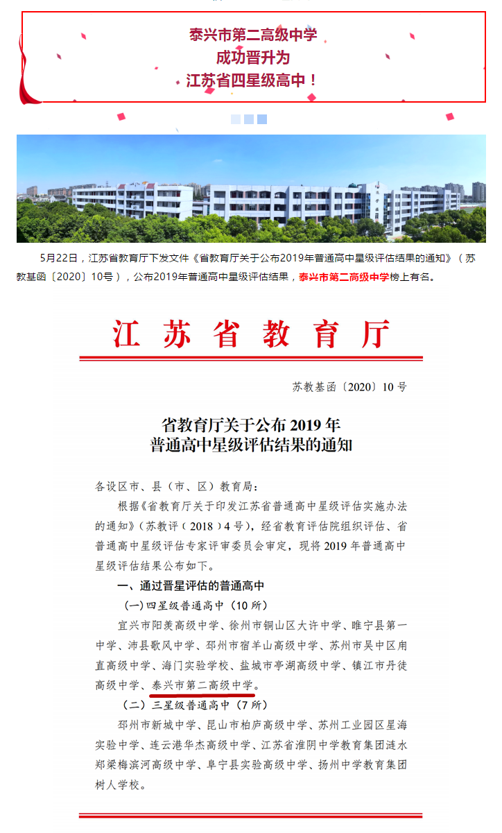 我校成功晋升江苏省四星级普通高中