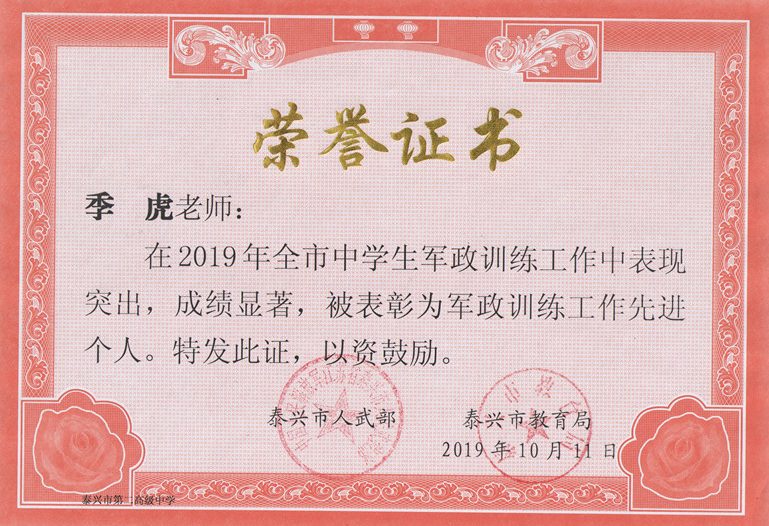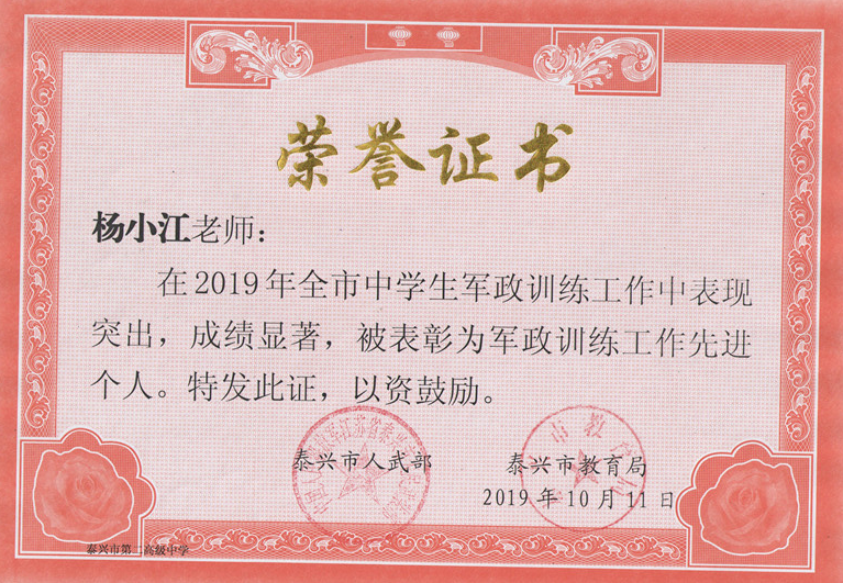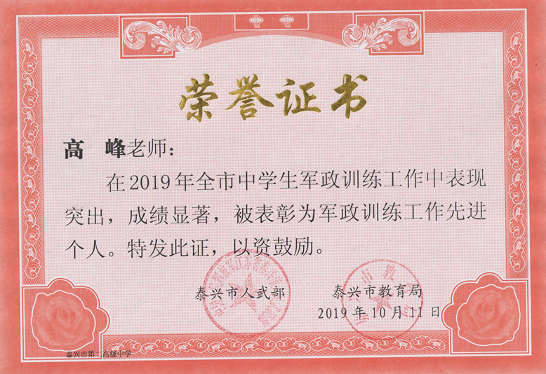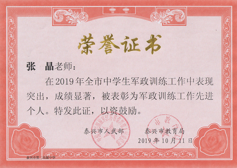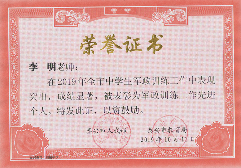 我校6名老师获2019年军政训练先进个人