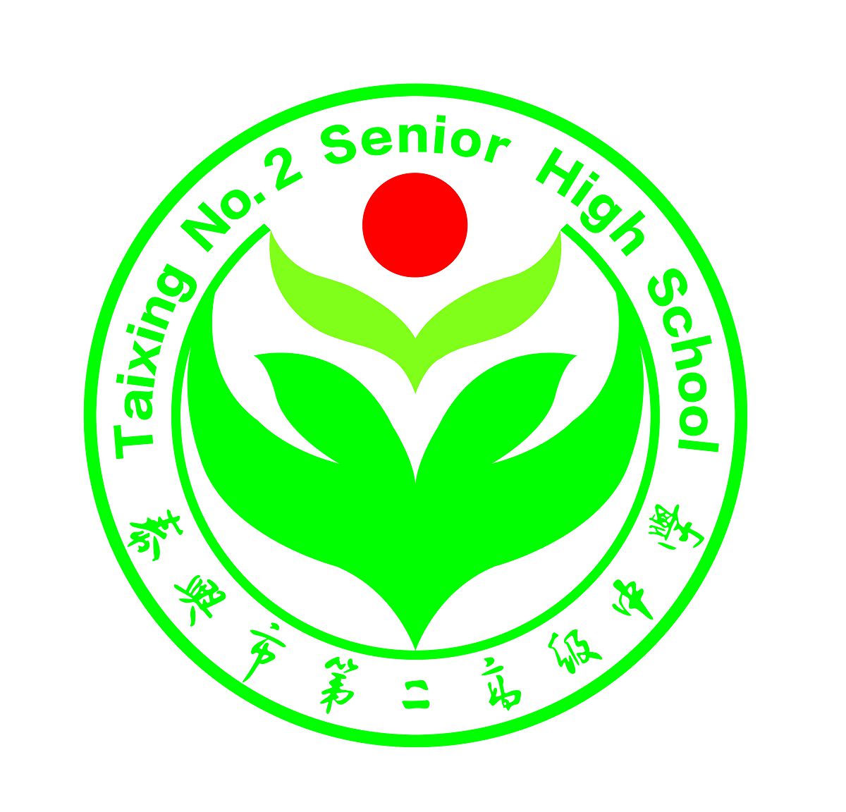 太阳、嫩苗、绿叶构成一个和谐发展的造型,寓意二高人争先创优、追求卓越、不断发展的团队风采,体现了二高“以德立校、以人为本”的办学思想。图案造型具有浓郁的现代气息,其中心图案与外部圆环和国际通用的英文相结合,昭示教育面向现代化,面向世界,面向未来。圆环形的设计又寓意着二高是莘莘学子茁壮成长的花园,是师生愉悦幸福的乐园,是平安和谐的家园。校徽整个图案主题鲜明,协调丰满,平静祥和,极富立体,彰显了二高鲜明的办学特色和厚重的文化底蕴。此校徽引人以自豪,焕人以激情,励人以壮志,崇人以美德。