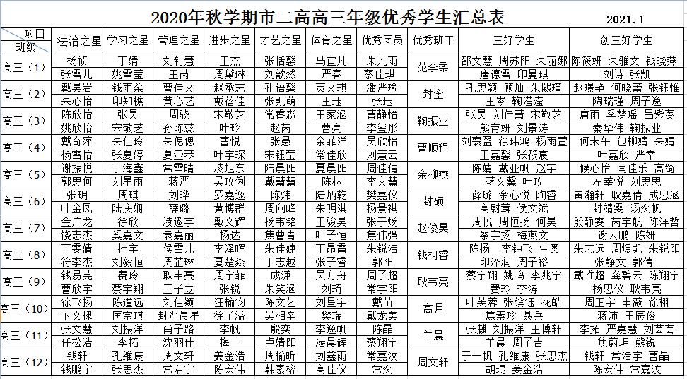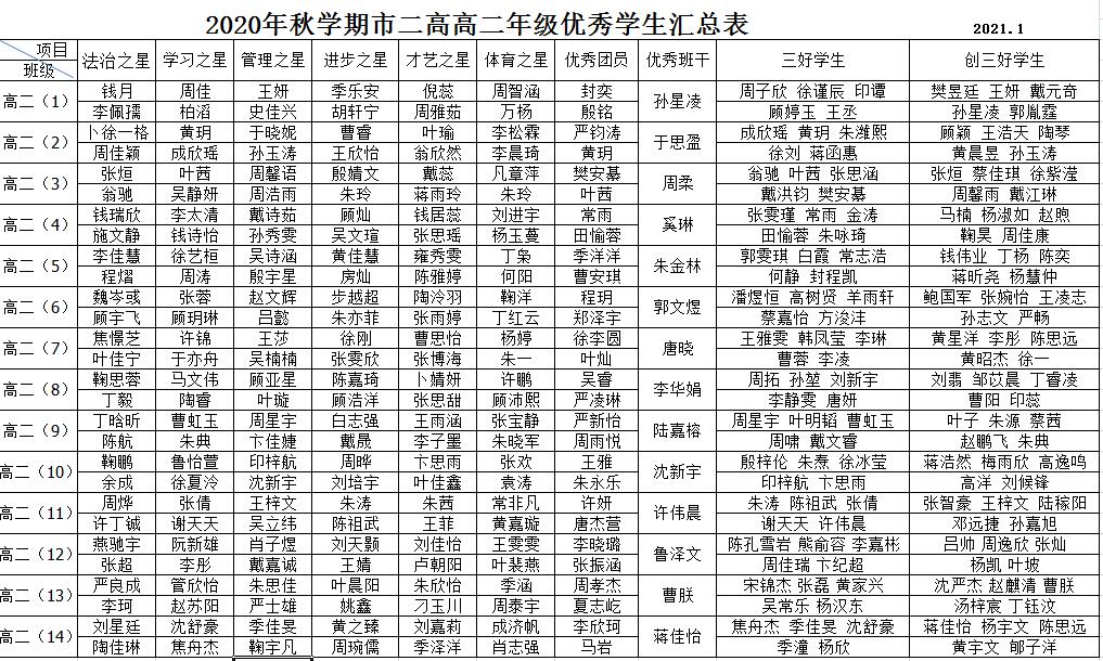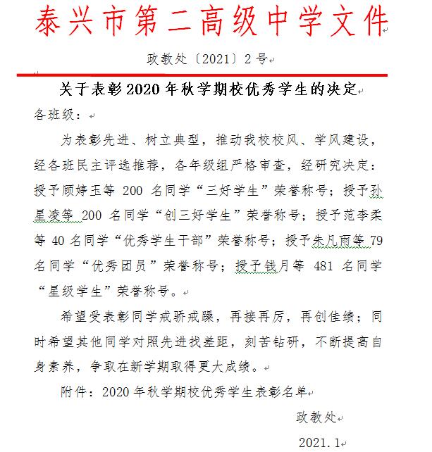 关于表彰2020年秋学期校优秀学生的决定