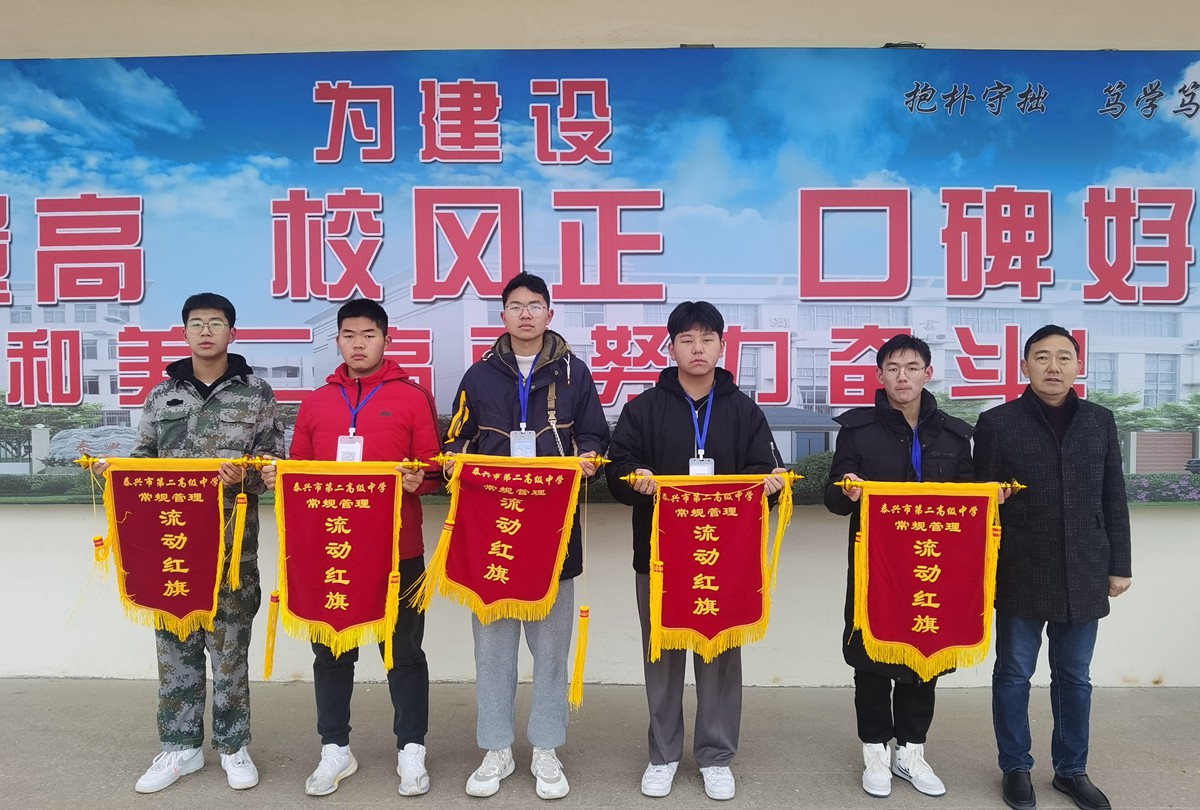 为奖励先进,激发学生学习积极性,不断提升常规管理水平,实现教育教学质量大提升,12月5日上午,泰兴二高举行高三年级“一马当先”“一鼓作气”奖颁奖仪式暨11月份班级常规管理流动红旗授旗仪式。仪式由高三年级组何建东主任主持。
