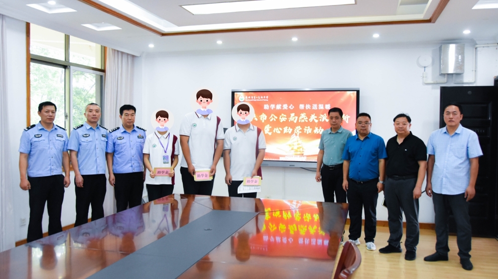 金秋九月,硕果累累。为进一步落实国家资助政策,帮助困难学生完成学业,9月19日上午,泰兴市公安局燕头派出所来我校开展“爱心助学”活动。燕头派出所教导员鲁献忠、副所长符军、辖区民警缪跃,我校校长符凯、副校长蒋建武出席活动。