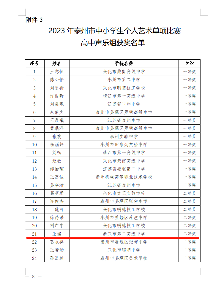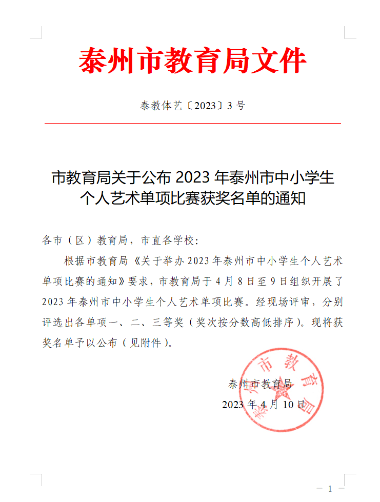 我校两名同学在2023年泰州市中小学生个人艺术单项比赛中获奖