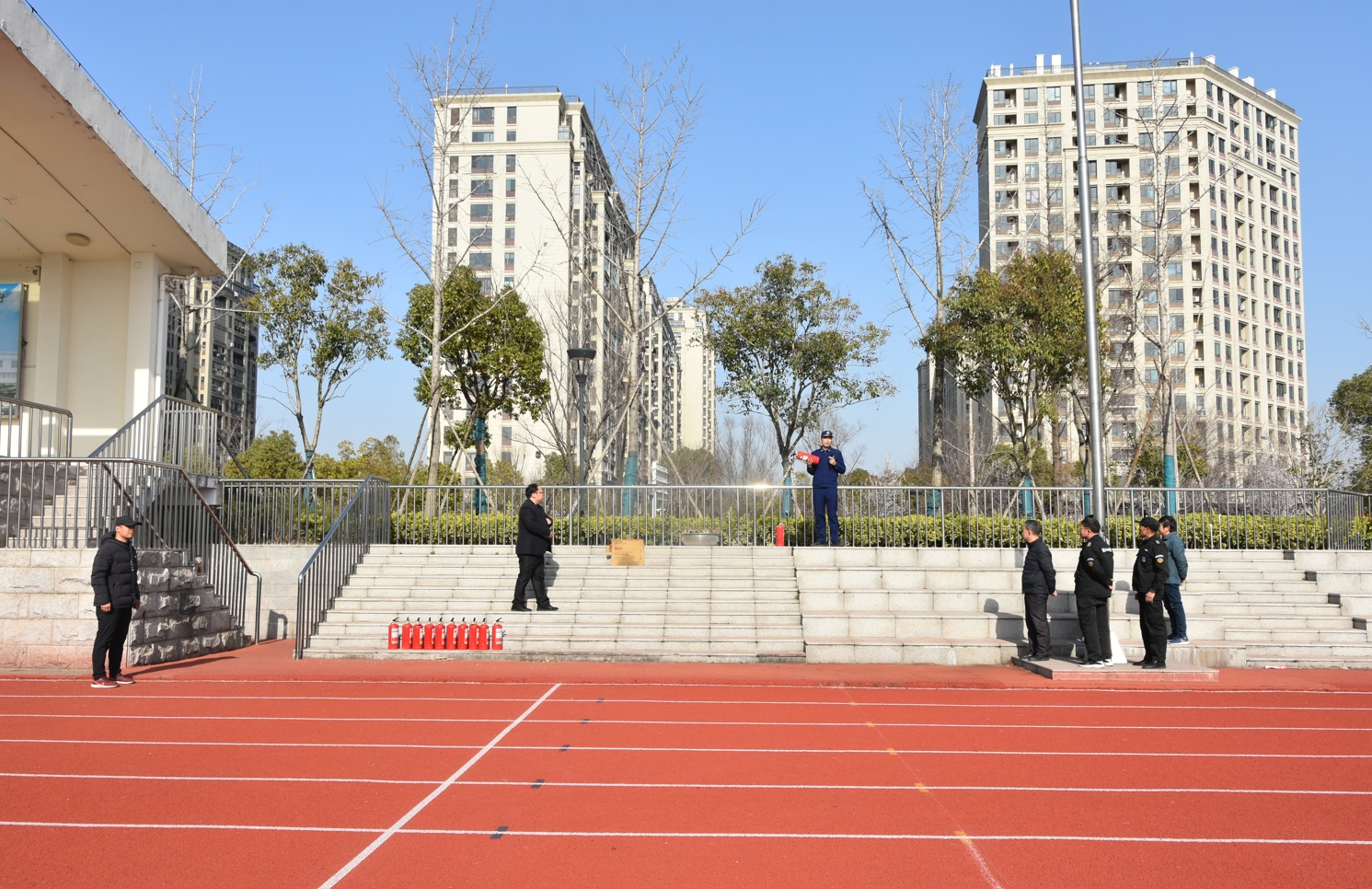 听到紧急的警报声,各班在班主任的带领下,迅速按照紧急预案的疏散线路带领学生有序撤离。大家拿起湿毛巾,捂住口鼻,弯腰小步快走,从各自的疏散通道有序下楼,快速集中到操场安全地带,随即,各班迅速清点人数,向总指挥报告,整个疏散活动迅速、有序。
