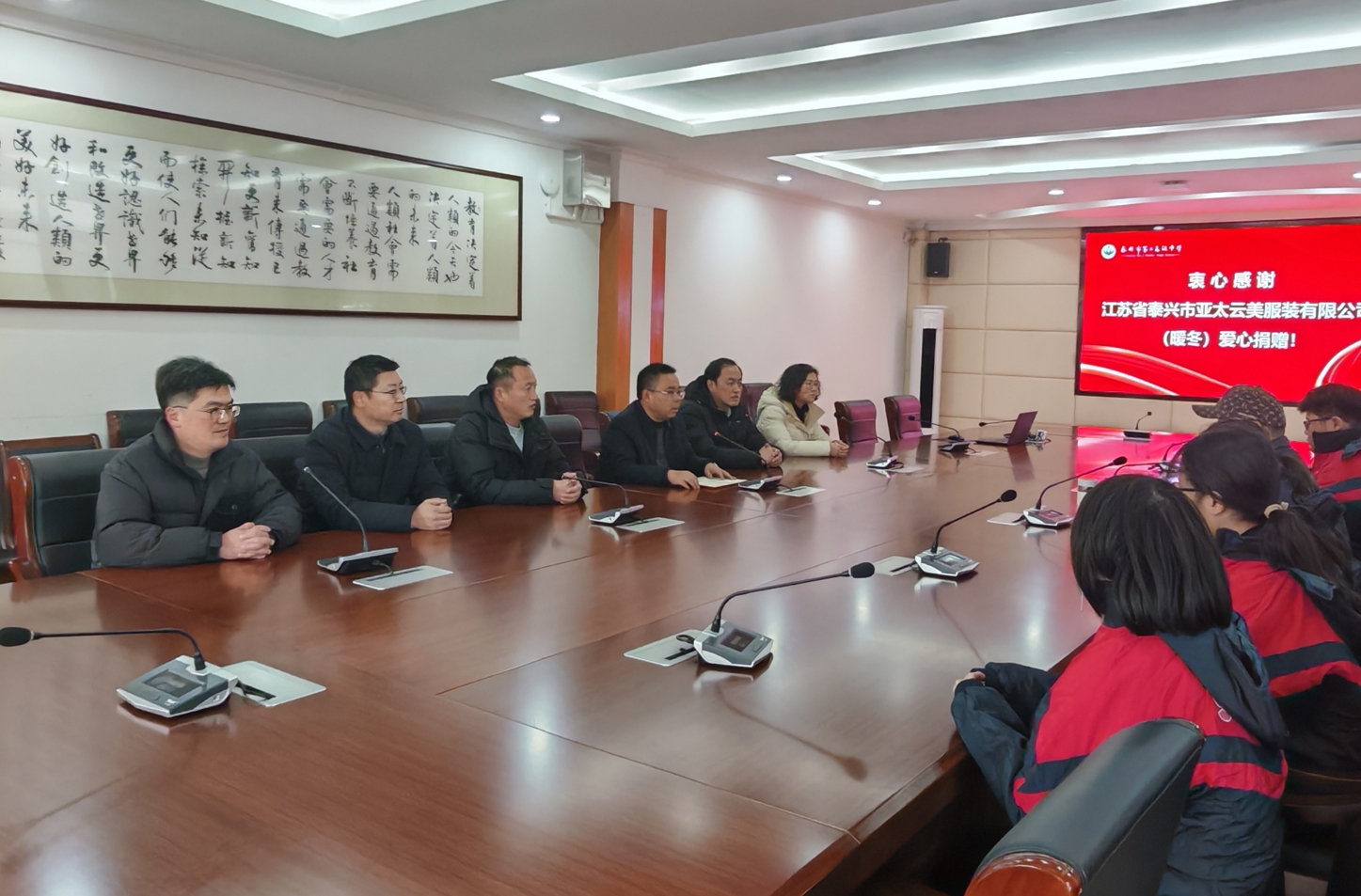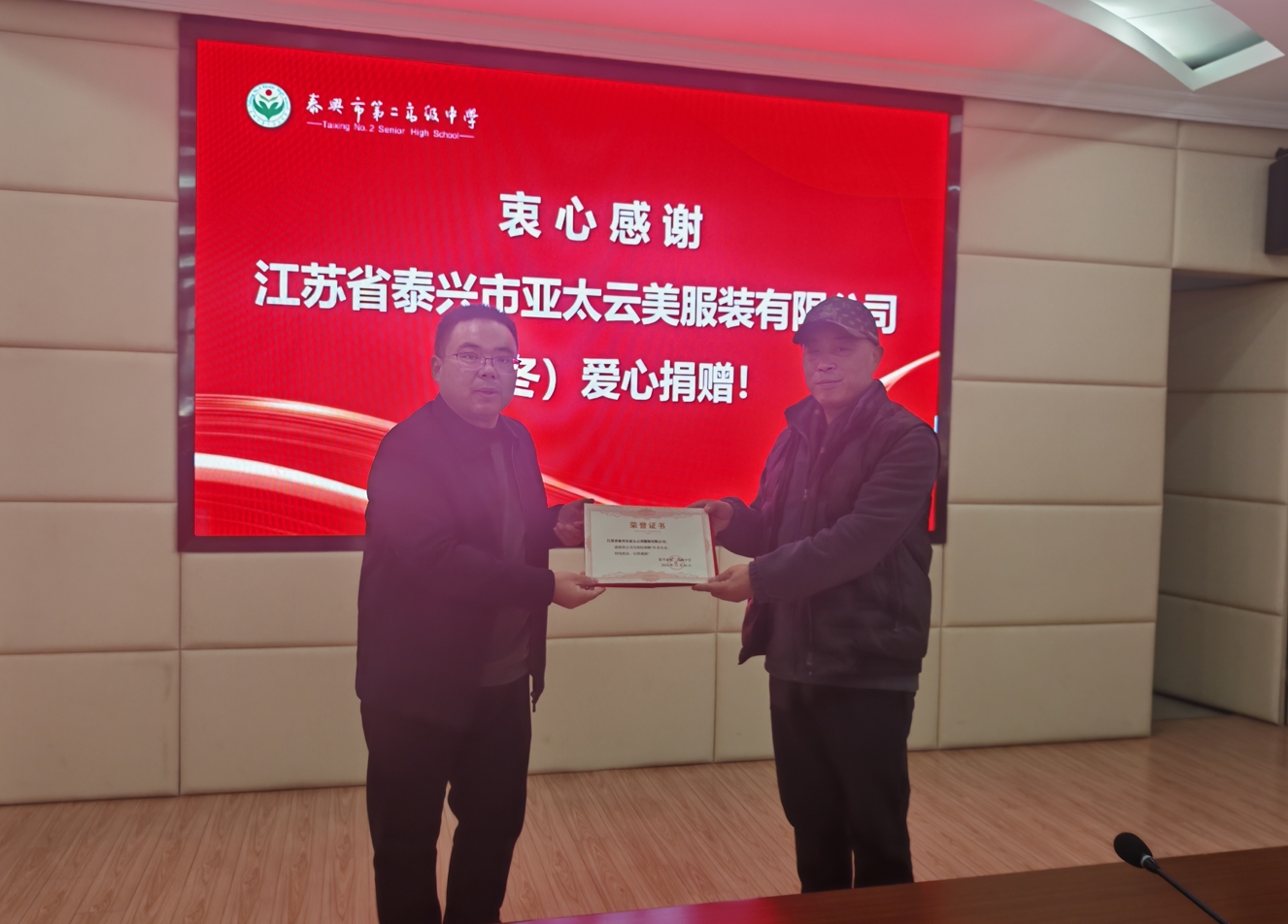 温暖“衣”冬,情满校园—— 泰兴市亚太云美服装有限公司爱心捐赠仪式在泰兴二高举行